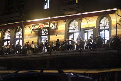 夜はまだ停電が多く道が暗いことから外出を控える人も多いそうですが、この時間にはカフェでくつろいでいる人達もたくさんいました。