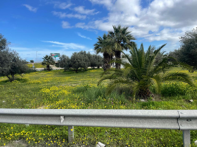 チュニスの空港を出ると一面に黄色の花。