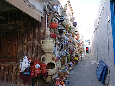 町中やスーク(市場)を歩けば、アラベスク模様などが描かれた美しい手書きの器やタイルにたくさん出会えます。