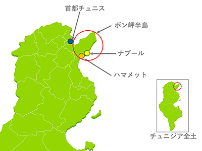 首都のチュニスからは車で1時間ちょっと。