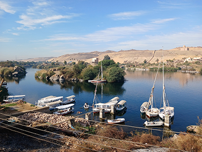 「ガルブ・ソヘイル」にはアスワン市内からボートやファルーカ(帆船)でナイル川を渡ってアクセスします。