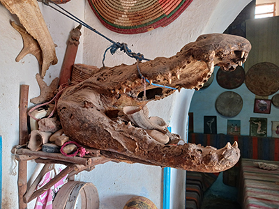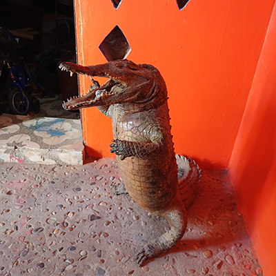 家の入口にワニのはく製を飾っている家がいくつもあります。